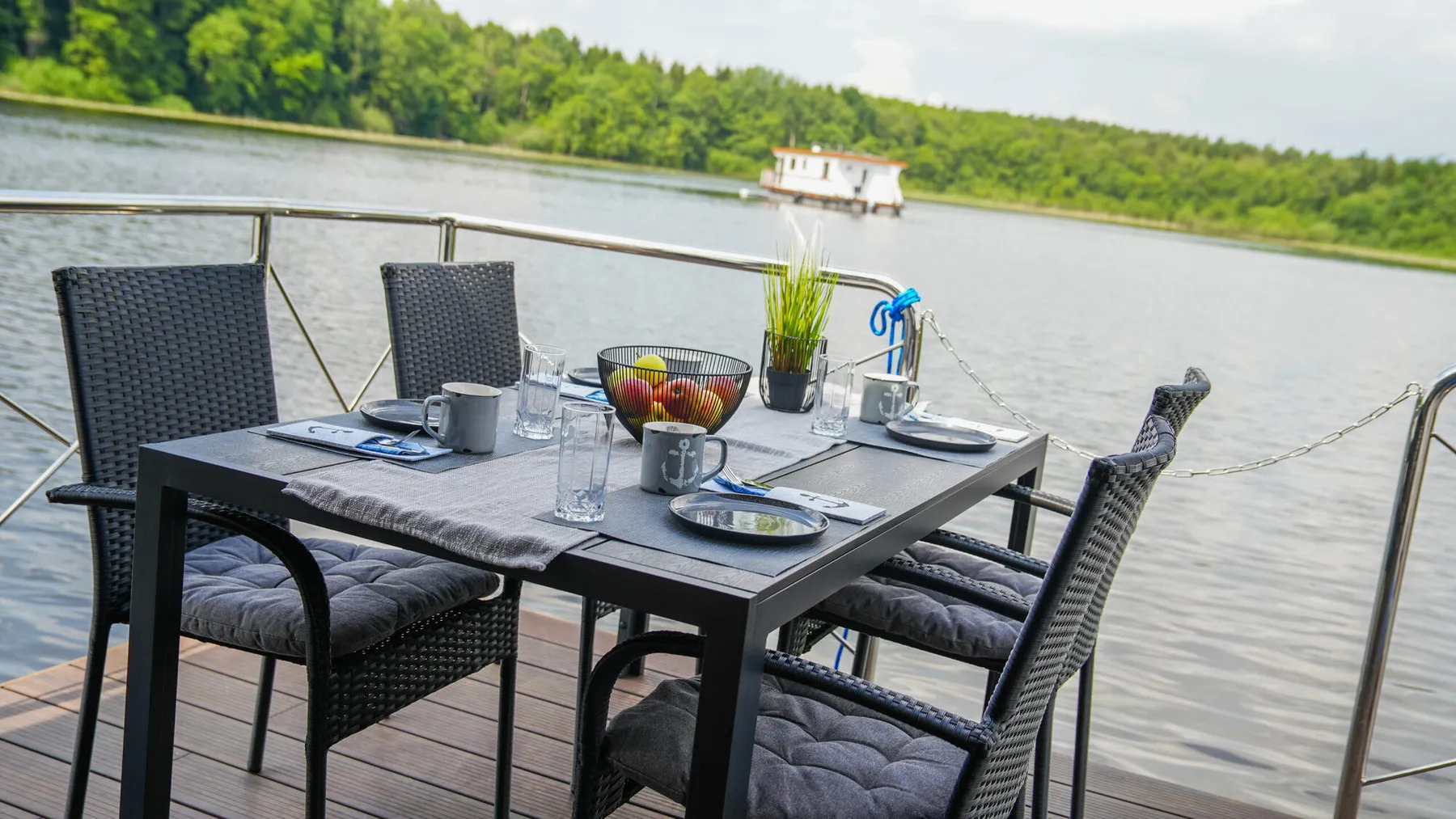 Willkommen an Bord deines komfortablen und familienfreundlichen Hausboots! Hier beginnt Urlaub, der Freiheit, Entspannung und Gemütlichkeit perfekt verbindet. Genieße sonnige Stunden auf dem großzügigen Sonnendeck, das du bequem über eine Treppe mit Handlauf erreichst – ideal zum Relaxen, Sonnenbaden oder für gemeinsame Momente mit der Familie. Im Inneren erwartet dich ein durchdachtes Raumkonzept mit zwei gemütlichen Kajüten, jeweils ausgestattet mit einem komfortablen Doppelbett. Zusätzlich bietet eine Couch mit Schlafmöglichkeit Platz für ein weiteres Kind oder einen Gast – perfekt für Familien. Der Steuerstand im Innenraum sorgt für entspanntes und sicheres Fahren bei jedem Wetter – Komfort und Kontrolle zu jeder Jahreszeit. Dieses Hausboot ist mehr als eine Unterkunft – es ist dein schwimmendes Urlaubszuhause. Jetzt buchen und unvergessliche Tage auf dem Wasser erleben!
