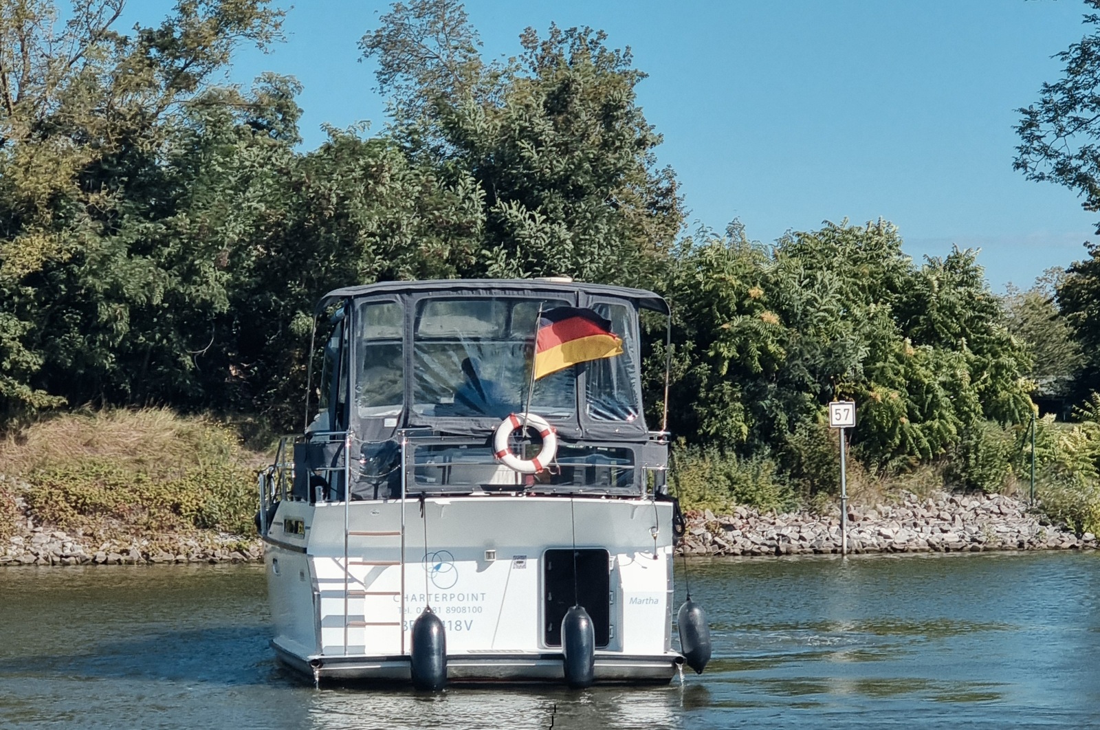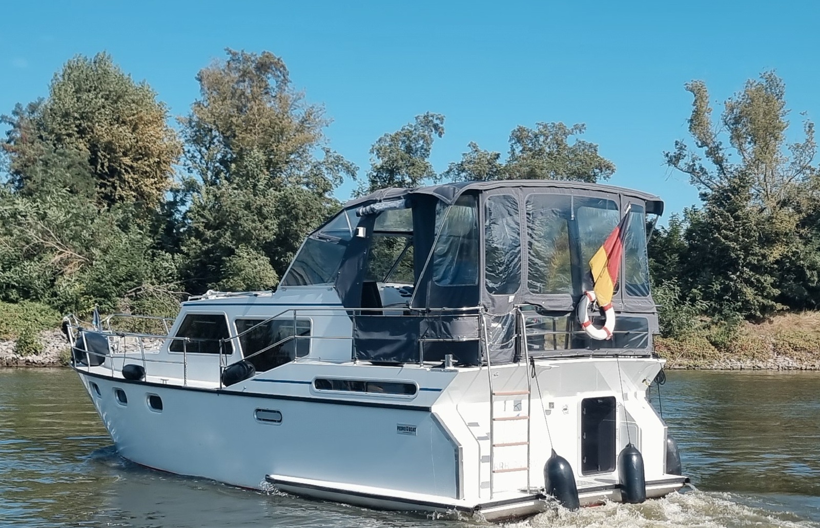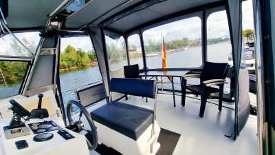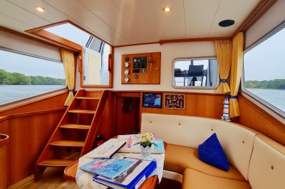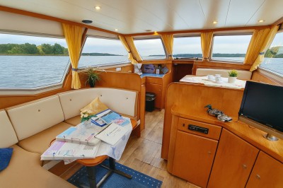 Die Ausstattungsvarianten der Yachten können vom Foto abweichen. Diese Yacht besitzt 6 feste und 2 umbaubare Schlafplätze. In der Bug- sowie Heckkabine finden Sie französische Betten vor. Ein Seiteneinstieg von beiden Seiten ist hier möglich. Das dritte Doppelbett ( seperate Schlafkabine) befindet sich bei dieser Yacht unter der Dinette, die umbaubaren Schlafplätze wären im Salon möglich. Empfehlenswert ist dieses Boot für 6 Personen. Die Pedro Solano 38 zeichnet sich durch ein sehr einfaches Handling, gestützt durch integriertes Bug- und Heckstrahlruder sowie einer Ruderstandsanzeige, aus. Für die Navigation und Routenplanung befinden sich umfangreiches Kartenmaterial (Mecklenburgische und Brandenburger Gewässer) an Board.