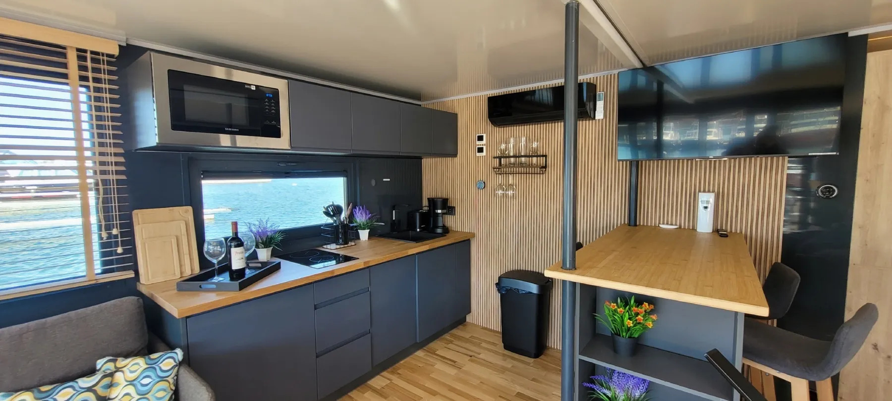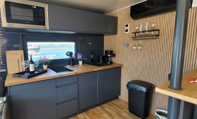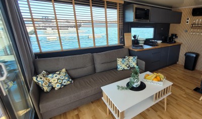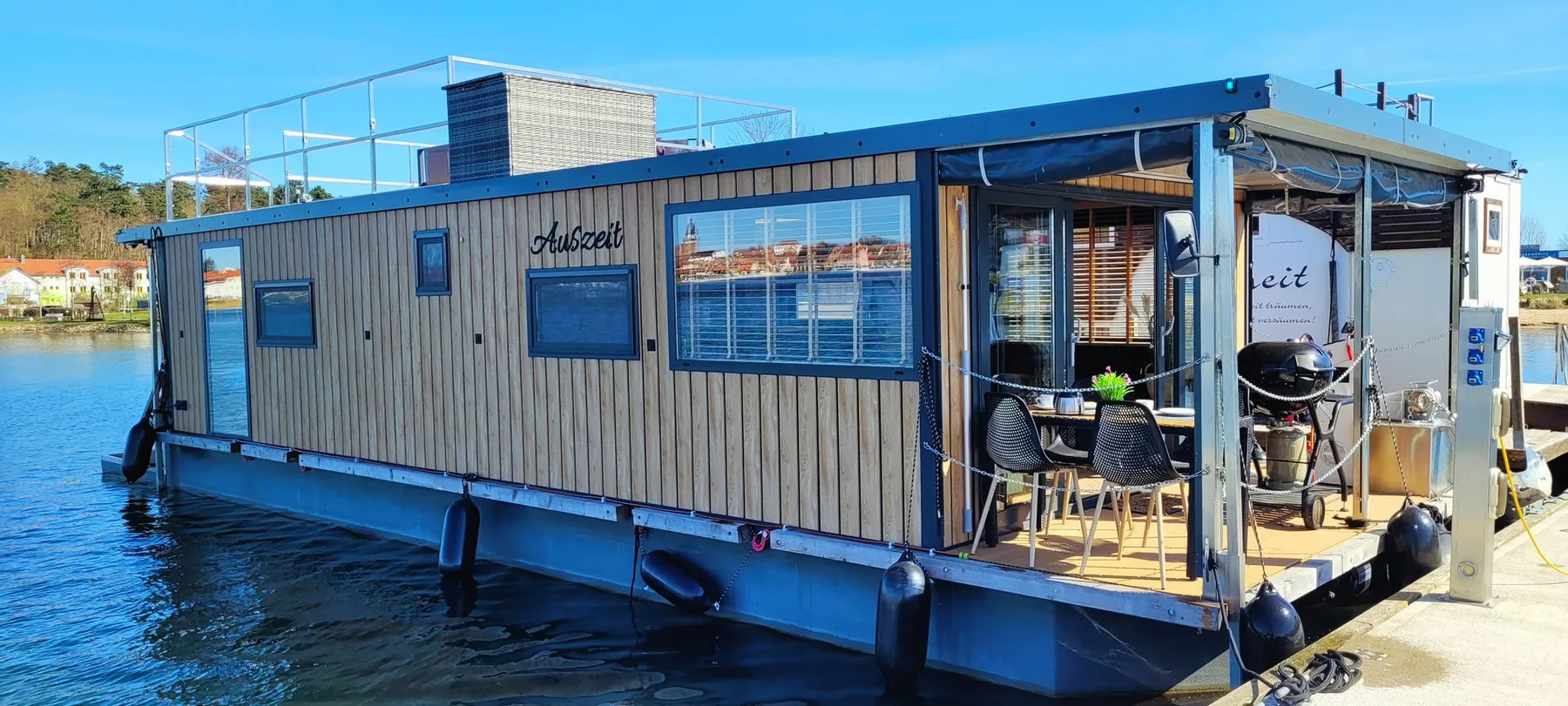 Auszeit mit Sauna, modernes Hausboot trifft auf finnische Sauna Ahoi und Willkommen an Bord der Auszeit mit Sauna Die Auszeit ist ein modernes Hausboot, sie verfügt über fortschrittlichste Navigationstechnik, Bug und Heckstrahlruder, Tiefenmessung und digitalen Navigationsgerät. Jeder Kapitän/ Kapitänin wird begeistert sein dieses Hausboot zu steuern und somit sicher die gesteckten Ziele zu erreichen. Von der Bugterrasse aus erreichen Sie, durch die großen Glasschiebetüren, unseren Salon der sofort zum verweilen einlädt. Ausgestattet mit ausreichend Möglichkeiten die Seele baumeln zu lassen, ob auf einer der gemütlichen Sofas bei einem Glas Wein mit Blick auf das Wasser und die umliegende Natur oder bei einem Spieleabend mit der ganzen Familie, Sie werden Ihren Urlaub auf diesem Hausboot genießen. Die angrenzende offene Küchenzeile verfügt mit ihrer großen Arbeitsfläche, einem Herd, einer Spülmaschine sowie Mikrowelle und Kühlschrank über alle Annehmlichkeiten einer gut ausgestatteten Küche um sich an Bord selbst zu verpflegen und Ihrer Familie oder Freunden ein tolles Essen zu zaubern. Vom Salon aus erreichen Sie über den Flur die beiden Schlafzimmer, das eine mit Doppelbett ( 160x200 cm) das andere mit einem ausziehbaren Schlafsofa eingerichtet. Ausreichend Stauraum für Ihre Kleidung haben Sie in beiden Schlafzimmern, Kleiderschränke und genügend Schubladen sind vorhanden um alles sicher unterzubringen. Im Bad finden Sie ein stilgerechtes Aufsatzwaschbecken mit Unterschrank, Hängeschränke für Ihre Badutensilien, Spiegelschrank sowie WC und Dusche. Wenn das Wetter schlechter wird oder in der kalten Jahreszeit ist Sie in absolutes Highlight, die an Bord befindliche Elektro Sauna, mit genügend Platz für zwei Personen. Die Heckterrasse, verfügt über eine große Badeplattform und bietet mit der vorhandenen Badeleiter einen komfortablen Zugang zum Wasser, auch von hier aus gelangen Sie über eine sichere Treppe auf die große Dachterrasse, welche zum Sonnenbaden oder gemütlichen Grillen einlädt. Wer auch gerne die Bereiche erkunden möchte, wo man mit dem Hausboot nicht hin kommt, für den haben wir in kleines Beiboot ( Dinghi ) welches im Preis mit inbegriffen ist , damit können Sie z.b. vom Ankerplatz in die engsten Häfen hinein oder bis an den Strand fahren. Mit der Müritz und den mehr als 1000 weiteren natürlichen Binnengewässern liegt Mitteleuropas größtes geschlossenes Seengebiet - die Mecklenburgische Seenplatte - in Mecklenburg-Vorpommern. Die Müritz ist der größte See, der vollständig innerhalb Deutschlands liegt. Der Yachthafen Maremüritz liegt direkt am Südufer des Kurortes Waren( Müritz), zwischen der Müritz und dem Feisnecksee. Innerhalb von wenigen Minuten erreicht man zu Fuß die charmante Innenstadt mit ihren zahlreichen Läden, kleine Boutiquen und Restaurants die zum Einkaufen, Verweilen und Genießen einladen. Es erwartet Besucher ein reizvolles Potpourri aus städtebaulichem Flair, herrlicher Natur am Müritz-Nationalpark und vielseitigen Möglichkeiten der Freizeitgestaltung.